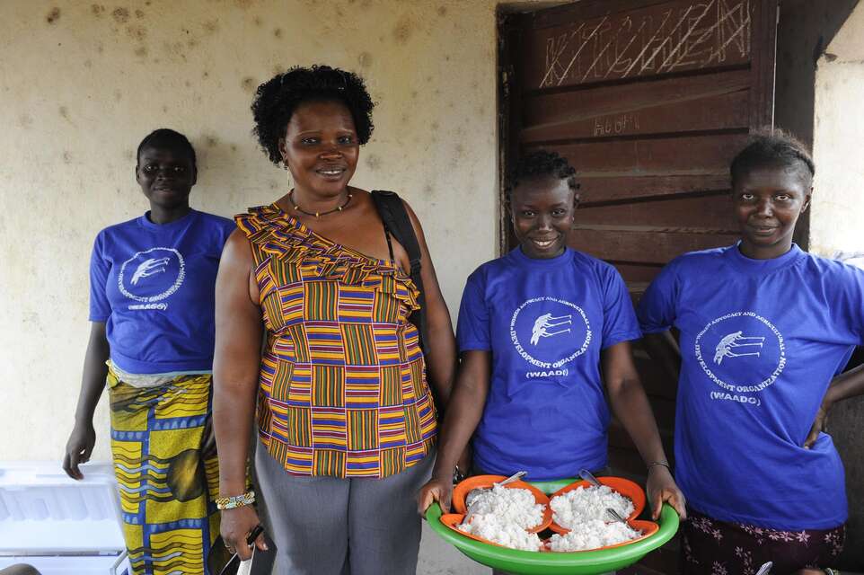 Am frühen Nachmittag, wenn es in Sierra Leone richtig heiß wird, lassen die Lehrerinnen ihren Unterricht an der berufsbildenden Schule von Waterloo auf köstliche Art und Weise ausklingen: Die angehenden Köchinnen und Catering-Fachkräfte zeigen, was sie gelernt haben, und teilen Fischeintopf und Kochreis mit den übrigen Mädchen und jungen Frauen. Mit dabei ist auch Doris Fatima Webber, die sich mit weiteren Angehörigen der Nichtregierungsorganisation Women Advocacy and Agricultural Development Organization (WAADO) um die Ausbildung kümmert. Sie soll den Schülerinnen, denen während der Bürgerkriegsjahre meist der Zugang zu Bildung verwehrt wurde, eine würdige Existenz ermöglichen.