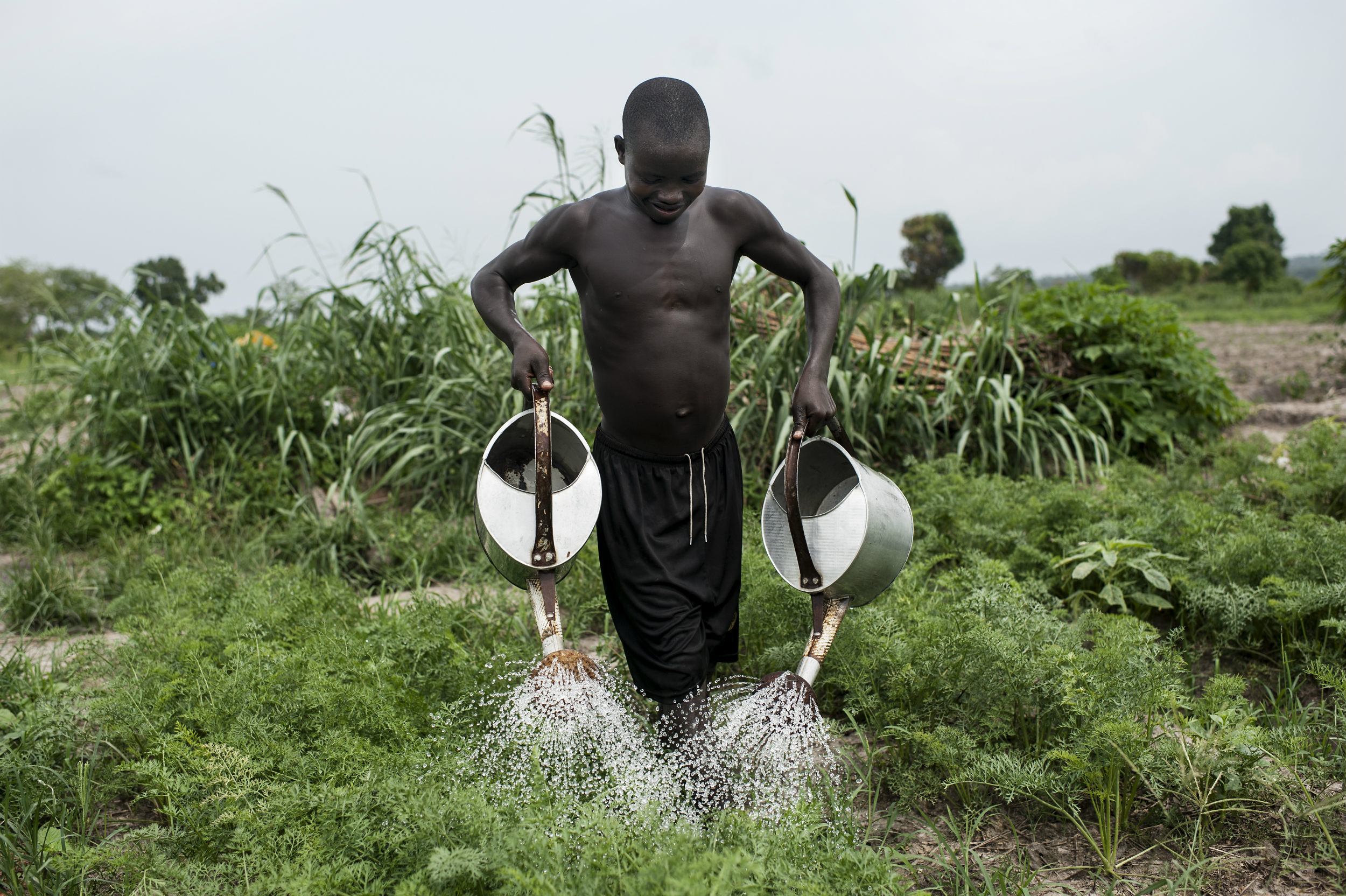 Beim Anflug fällt mir zunächst auf, was ich nicht sehe. Noch vor einem Jahr lebten Binnenflüchtlinge buchstäblich auf der Landebahn des Flughafens von Bangui. Sie bauten neben den Pisten Gemüse an und brachten sich beim Anflug einer Maschine, zwei Maschinen pro Woche aus Paris, sonst überwiegend UN-Flüge, in Sicherheit. Mittlerweile sind Tausende umgesiedelt: Auf 100 Hektar Land, die die Regierung nach Verhandlungen mit der Welthungerhilfe zur Verfügung gestellt hat. Wir haben auf dem Gelände einen Marktplatz und eine Schule gebaut. In einem Trakt werden die Kinder unterrichtet, in einem anderen lernen deren Mütter lesen und rechnen. Aus den 100 Hektar Brachland sind reiche Gemüsebeete geworden, Projektmitarbeiter*innen lehren Gemüseanbau, und die Frauen bauen nun neben Amarant auch Zwiebeln, Karotten, Gurken an. Erste Erfolge zeichnen sich ab: 95% der Menschen im Projektgebiet haben mittlerweile eine ausgewogene Ernährung; im nationalen Durchschnitt sind es 55%.