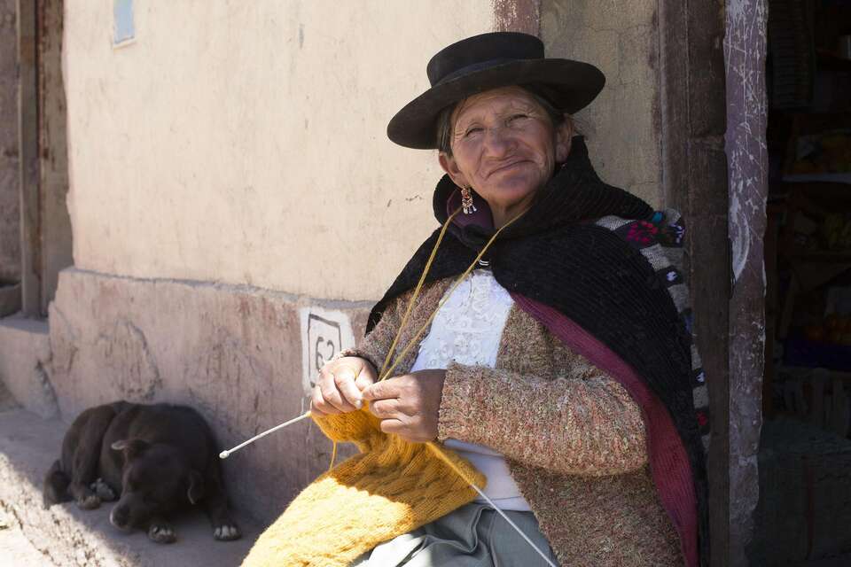Hilda Machuca strickt. Pullover, die die Menschen hier auf eisigen 4.500 Metern gut gebrauchen können. Wenn sie die Kosten für die Wolle abzieht, bleiben ihr beim Verkauf 13 Euro für die Arbeit einer ganzen Woche. „Früher habe ich nie gestrickt“, sagt die kleine Frau. „Früher hat uns die Alpakazucht ernährt.“ Jahrhundertelang war dies die einzige, aber sichere Einkommensquelle der Quechua-Familien. Denn auf den kargen Höhen der Anden wächst kaum etwas anderes als Kartoffeln, Gerste oder Weidegras für die Alpakas. Auch wenn das Leben hart war, konnten die Familien früher vom Verkauf der Tiere, der Wolle und des Fleisches leben. „Wir waren arm, aber wir mussten nie hungern“, erinnert sich Hilda Machuca.