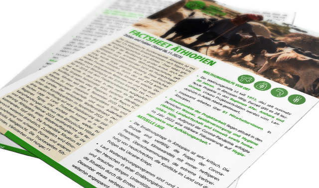 Äthiopien ist immer wieder von Hungersnöten bedroht. Die Hungerkrise in den Jahren 1984/1985, bei der fast eine Million Menschen umkamen, ist bis heute Sinnbild für humanitäre Notfälle. Regelmäßig wird das Land von schweren Dürren heimgesucht, die Trockenzeiten führen zu Missernten und Viehsterben – eine Ursache für die zunehmenden Wetterextreme ist der Klimawandel. Seit Ende 2020 wurden im Norden des Landes Tausende im bewaffneten Konflikt zwischen der äthiopischen Armee und der sogenannten Volksbefreiungsfront von Tigray (TPLF) getötet. Im November 2022 wurde ein Friedensabkommen zwischen den Konfliktparteien unterzeichnet, doch die Ernährungslage bleibt für Millionen Menschen in der Region kritisch.