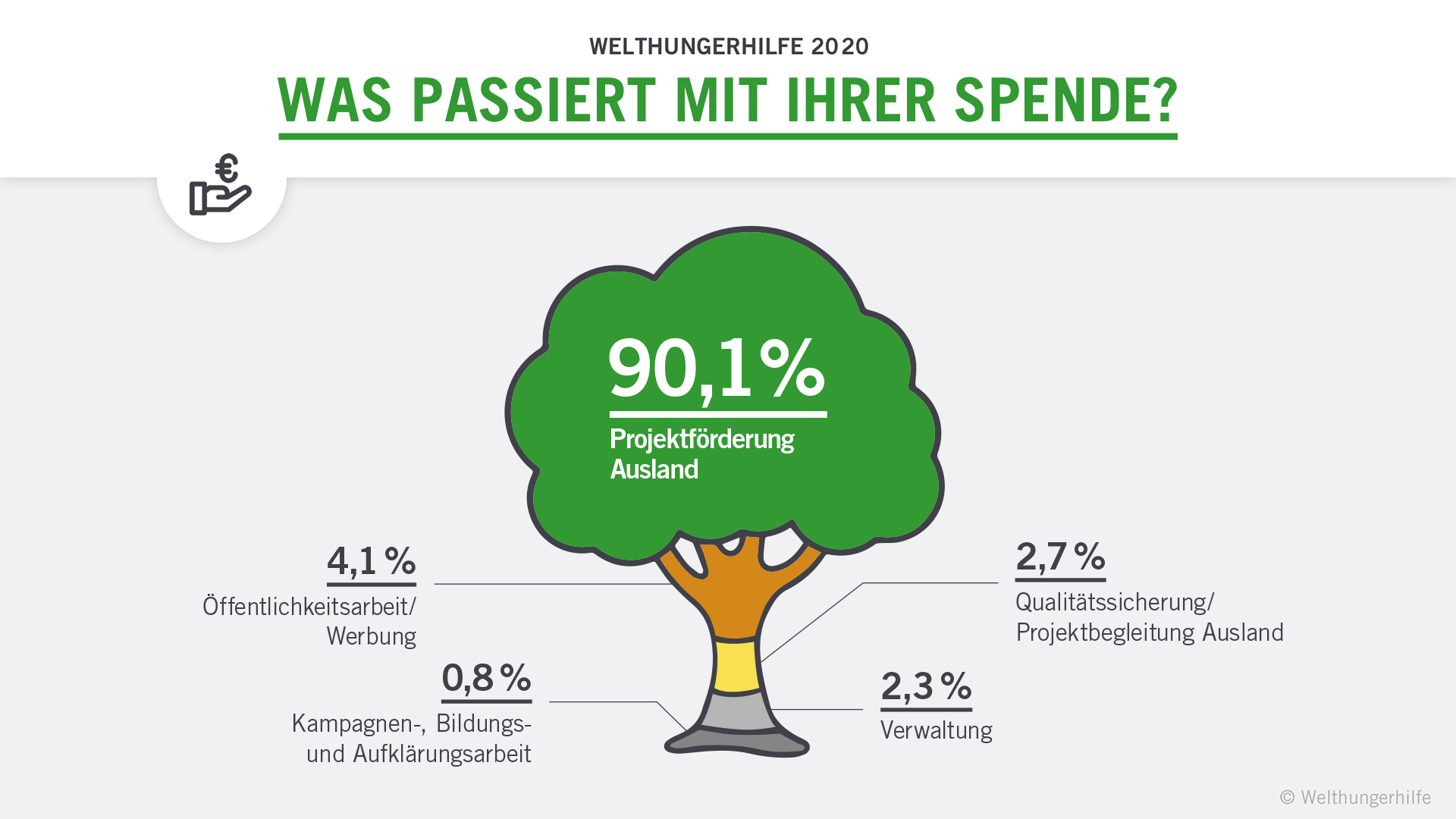 Die Welthungerhilfe steht für Transparenz und Qualität, für sparsamen und zielgerichteten Einsatz der Spenden und verifizierte Informationen. Aus diesem Grund hat uns das Deutsche Zentralinstitut für soziale Fragen (DZI) mit dem Spendensiegel ausgezeichnet. Wir setzen Ihre Spende gezielt und mit großer Verantwortung ein. Sollten wir für ein Projekt mehr Spenden als benötigt erhalten, werden andere Projekte der Welthungerhilfe gefördert, die einer Finanzierung bedürfen.