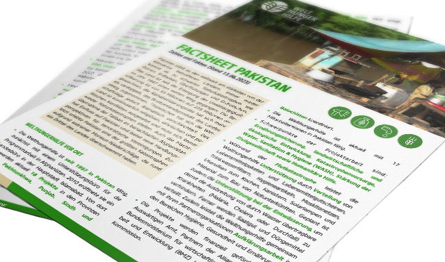 Pakistan zählt zu den weltweit am stärksten vom Klimawandel betroffenen Ländern. Extremer Regen und Erdbeben – immer wieder kommt es zu schweren Naturkatastrophen. Vor allem kleinbäuerliche Familien leiden unter den regelmäßigen Erdbeben, Überflutungen und Erdrutschen. Ihre Häuser werden von den Naturgewalten mitgerissen, Felder und Bewässerungsanlagen zerstört. Ausstehende Ernten werden vernichtet, Saatgut kann nicht ausgebracht werden. Die Welthungerhilfe führt in Pakistan sowohl akute Nothilfe-Projekte, als auch langfristige Projekte der Entwicklungszusammenarbeit durch. Maßnahmen zur Katastrophenvorsorge helfen den Menschen zudem, auf kommende Ernstfälle, wie beispielsweise starken Monsunregen, besser vorbereitet zu sein.