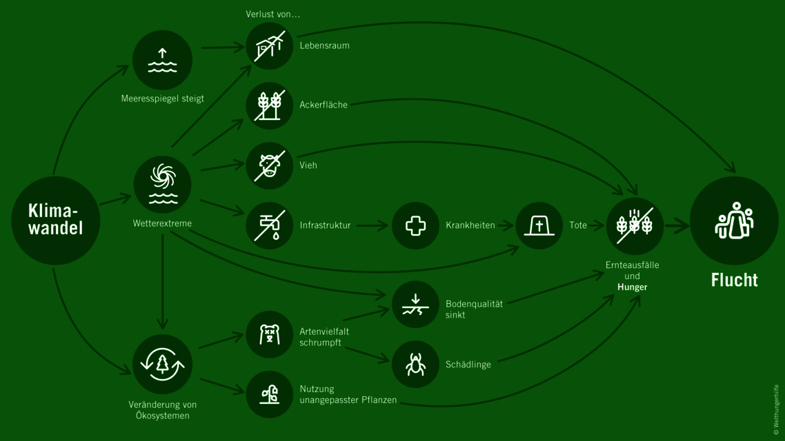Der weltweite Temperaturanstieg erhöht die Witterungsrisken und hat über die Jahre dazu beigetragen, die Anzahl und Intensität extremer Wetterereignisse zu erhöhen. Dürren dauern länger, Stürme werden heftiger und Niederschläge bringen mehr Regen pro Quadratmeter. Diese Wetterextreme treffen vor allem die ärmsten Länder der Welt schwer. Sie sind am wenigsten für die Klimaveränderungen gewappnet und im Fall einer Katastrophe oft schutzlos ausgeliefert.