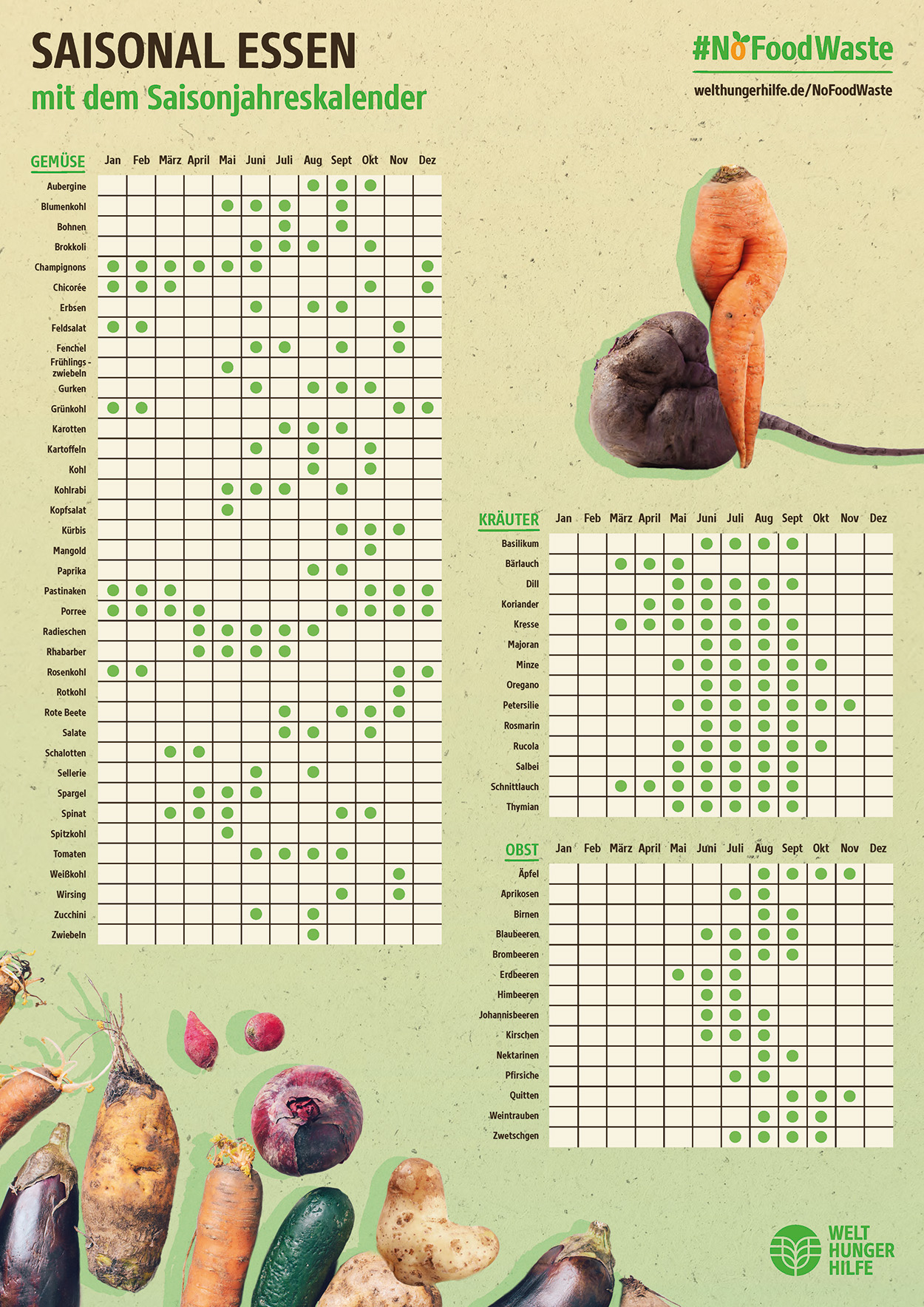 Achten Sie beispielsweise darauf, wie verschiedene Lebensmittel gelagert werden müssen, damit diese länger haltbar sind. Entdecken Sie weitere Tipps in unseren Informationsmaterialien und lassen Sie sich auch von unseren 10 Ideen gegen Lebensmittelverschwendung inspirieren!