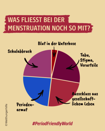 Tabu, Stigma, Vorurteile: Die Menstruation ist für Menstruierende auf der ganzen Welt eine Zeit der Herausforderungen. Im globalen Süden werden Menschen während ihrer Menstruation noch immer aus dem gesellschaftlichen Leben ausgeschlossen und viele Mädchen brechen aus Scham die Schule vorzeitig ab. So wird die Menstruation zu einem existentiellen Problem.