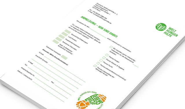 Los geht es: Anmelden, Materialien bestellen, Infos zur Schulstunde anfordern und loslegen! Mit deinem LebensLauf machen du und deine (Mit-)Schüler*innen dem weltweiten Hunger Beine. Seit 2016 fließen alle LebensLauf-Spenden in Bildungsprojekte der Welthungerhilfe - denn Bildung ist der Schlüssel für ein besseres und selbstbestimmtes Leben.