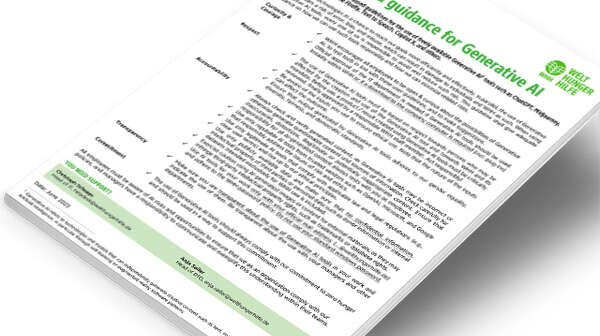 Unser Leitfaden "AI at Welthungerhilfe: Value based guidance for Generative AI" soll als Anleitung dafür dienen, wie wir diese Werkzeuge verantwortungsvoll einsetzen und die damit verbundenen Risiken minimieren können.