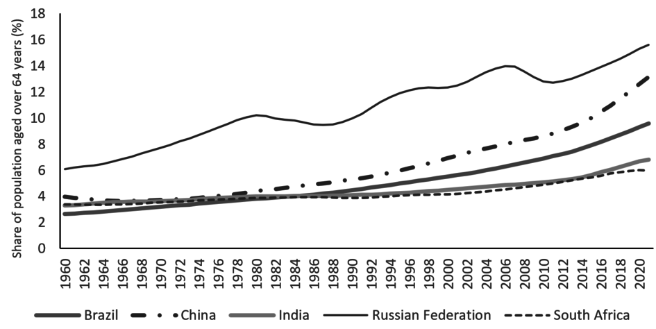 (7) Johnston, Lauren, ‘Poor-Old BRICS: Demographic Trends and Policy Challenges’. https://saiia.org.za/research/poor-old-brics-demographic-trendsand-policy-challenges/